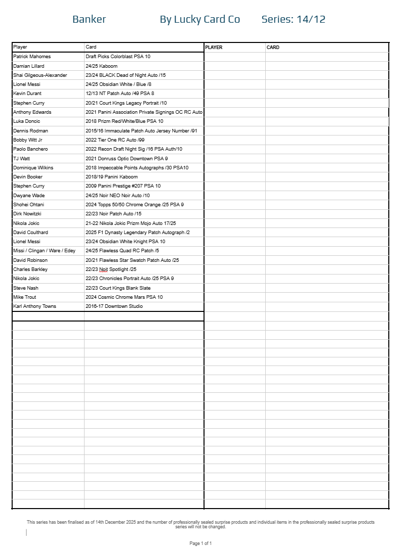 Every BANKER box is a Professionally Sealed Surprise Product containing one individually sealed card from the published checklist.